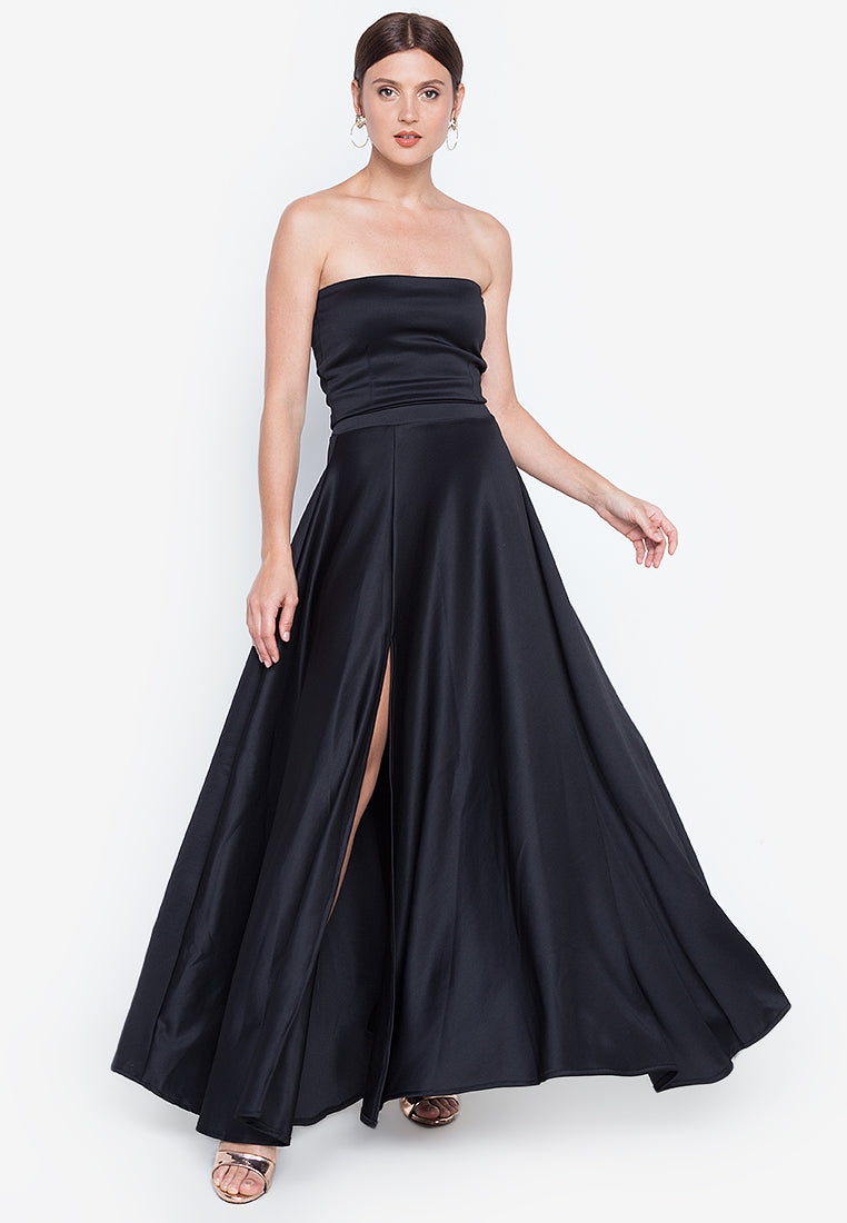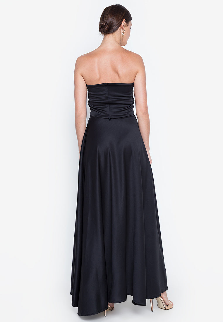 Bandeau Sweep Train Maxi Set in Black