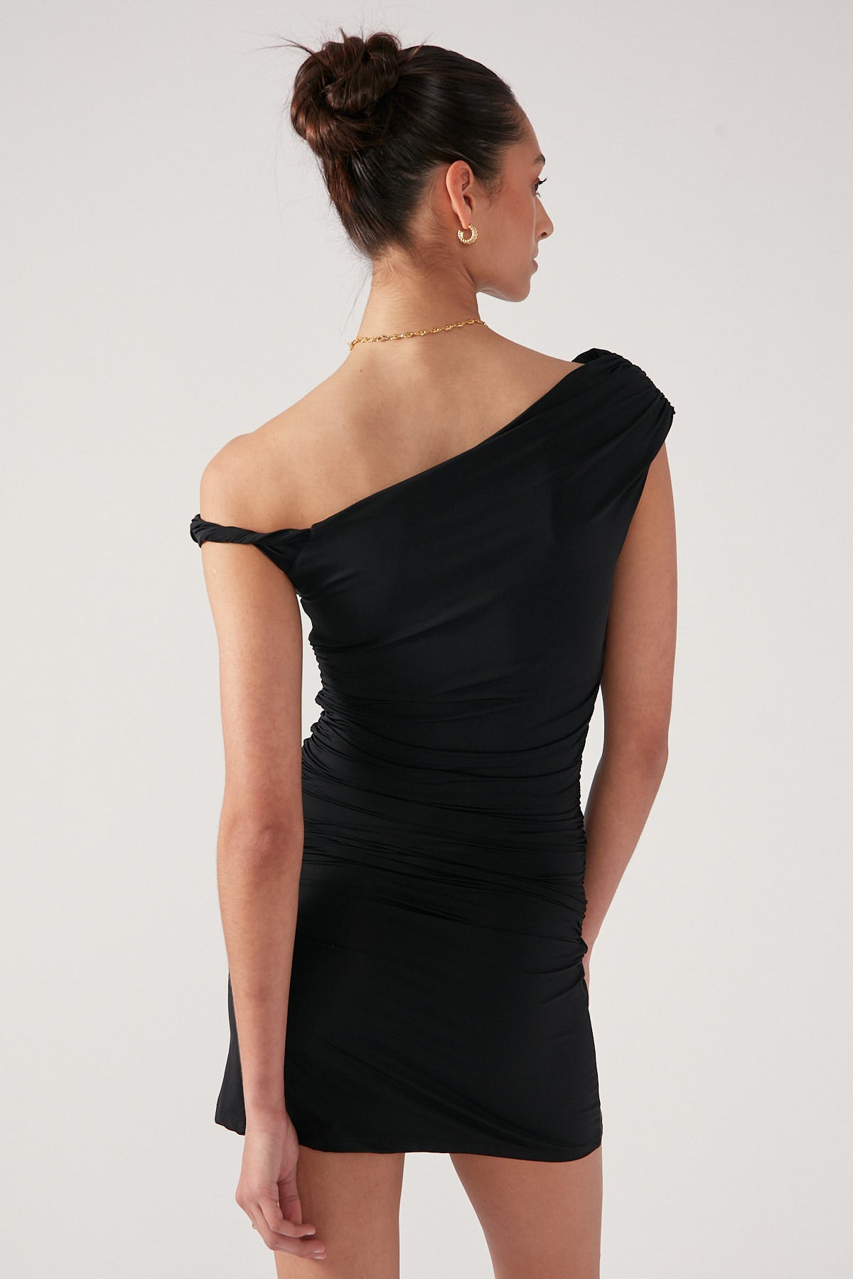 Black Gathered Mini Dress