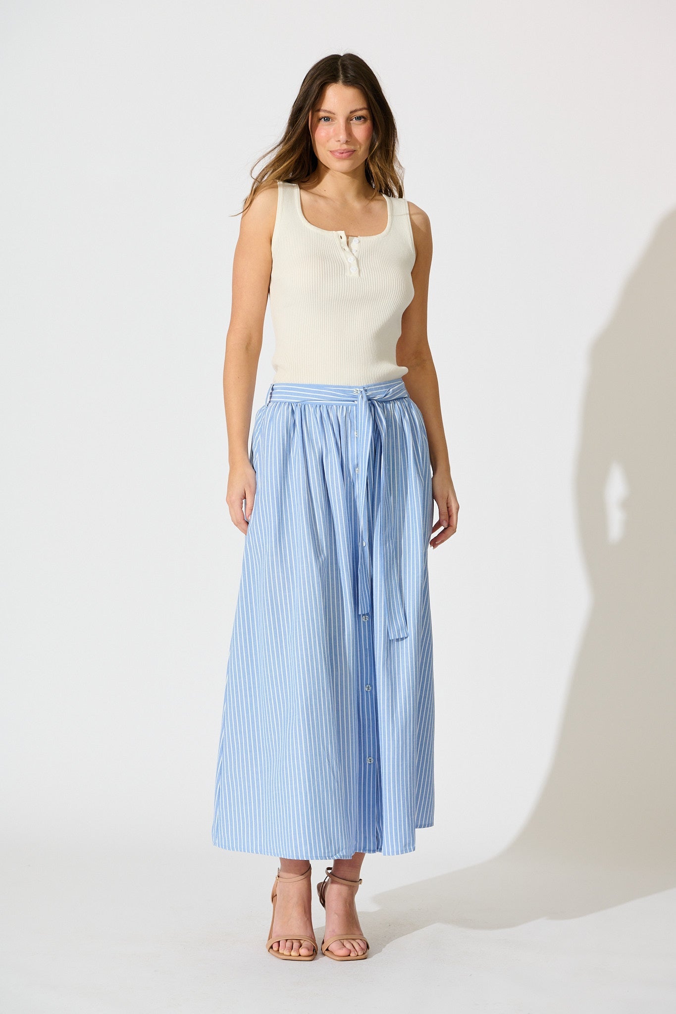 Blue & White Striped Pattie Maxi Skirt