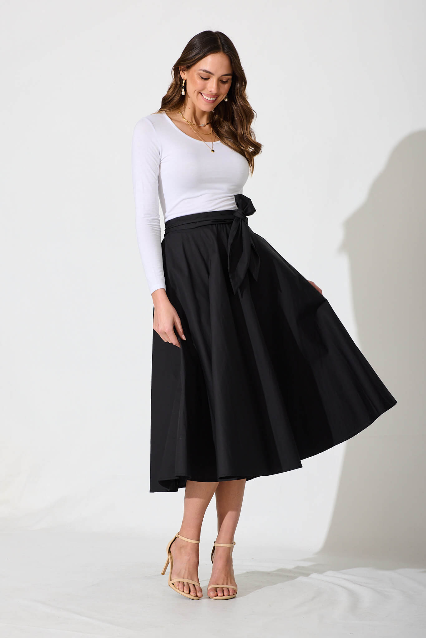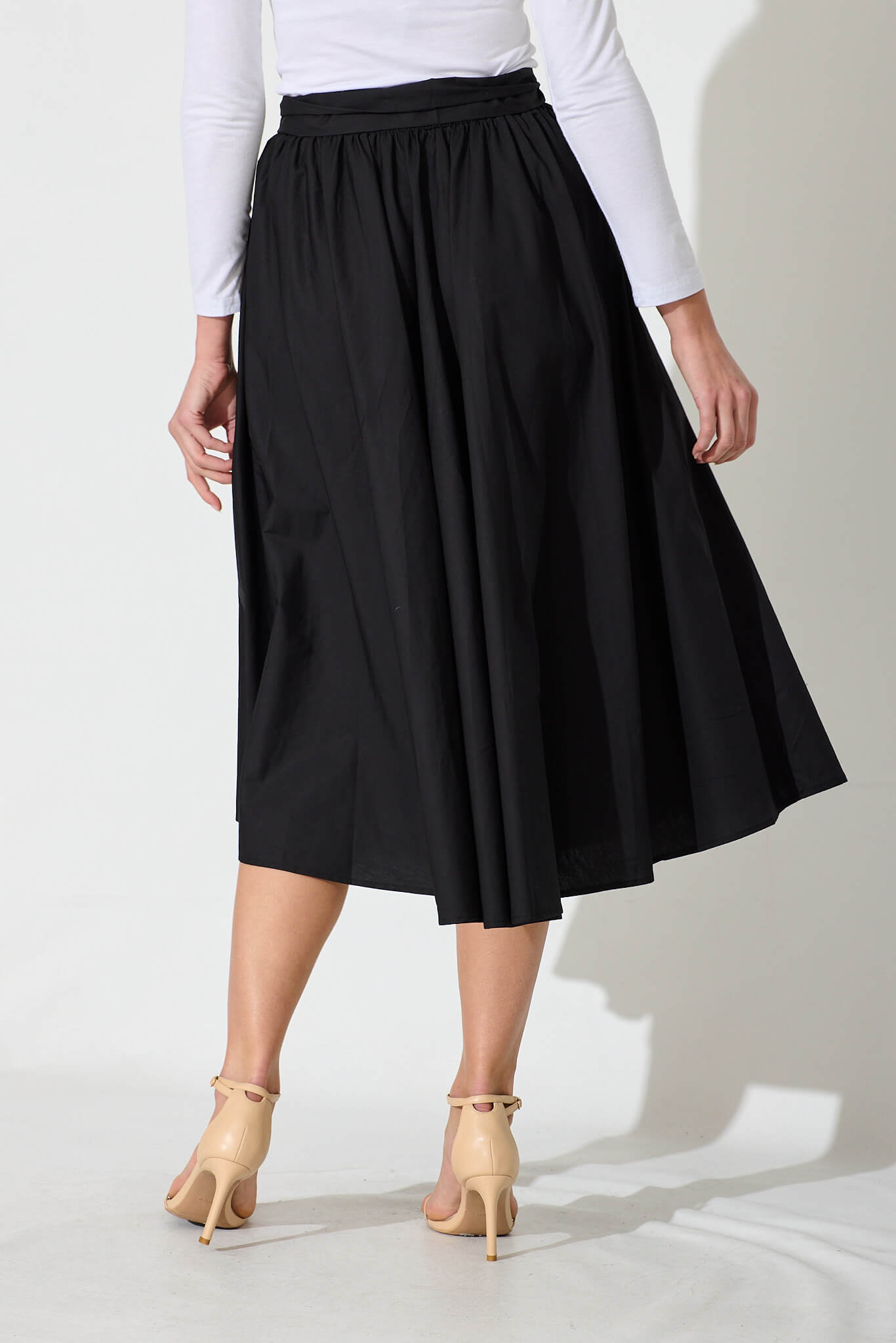 Chic Black Cotton Ivy Midi Skirt