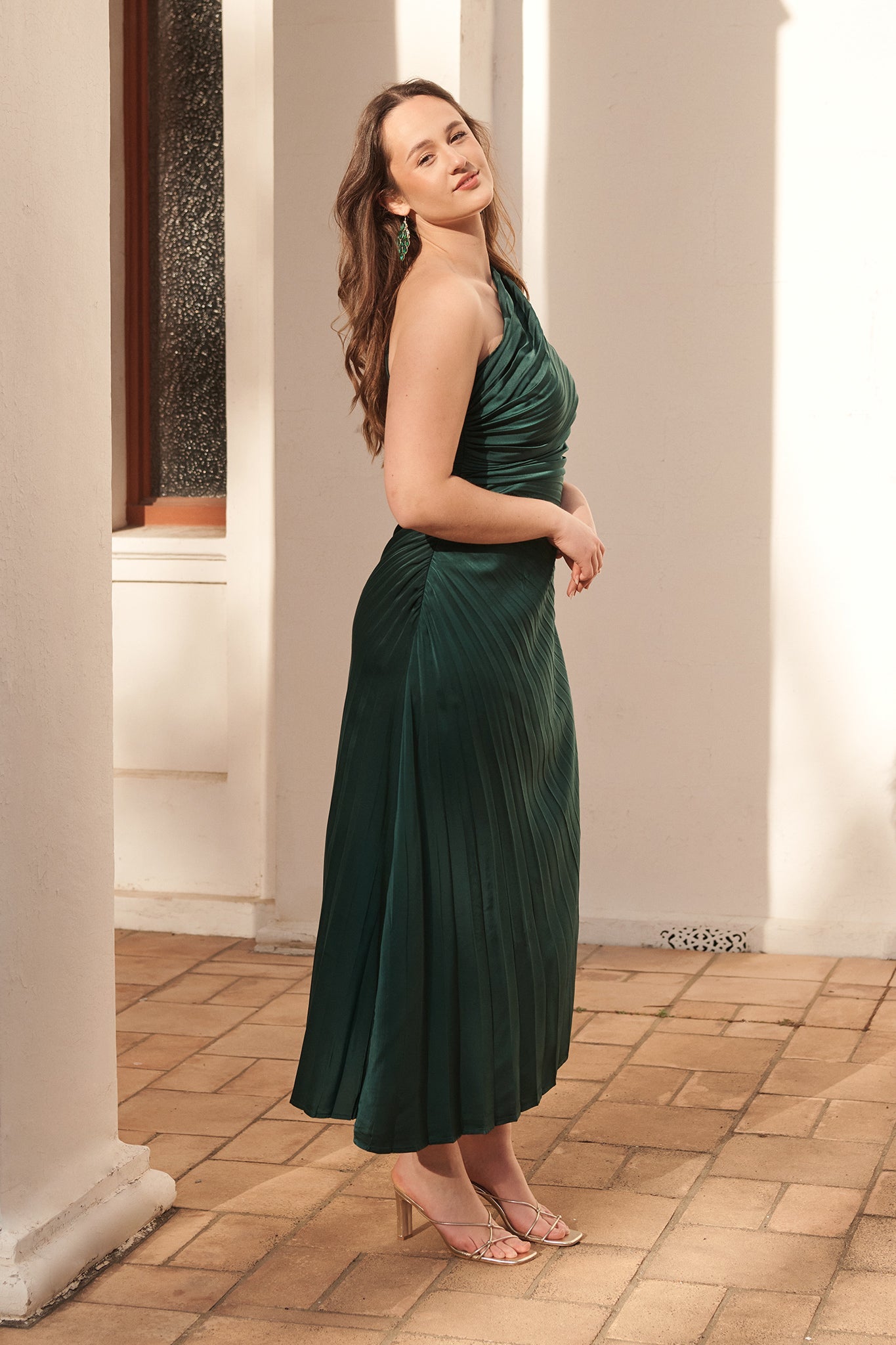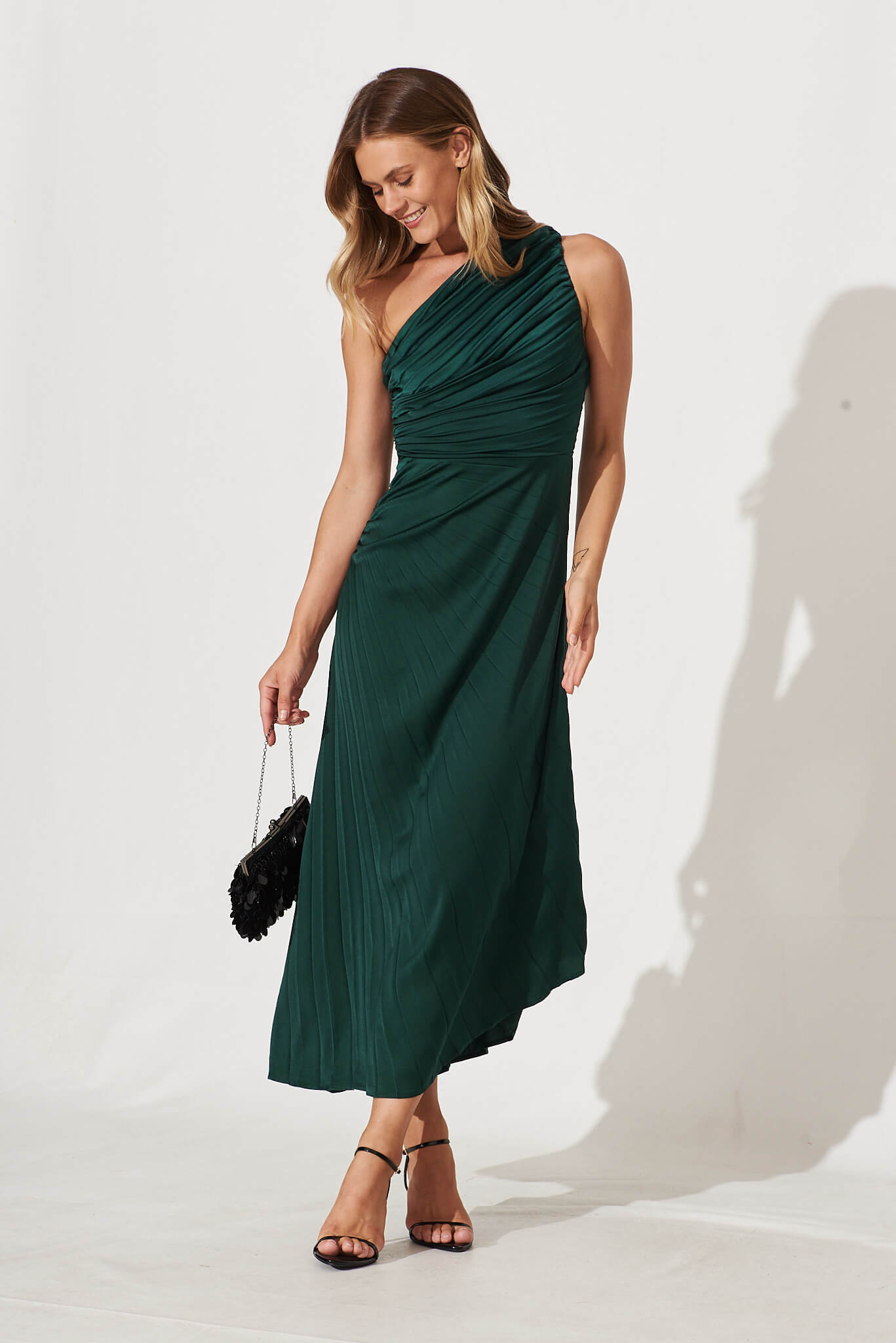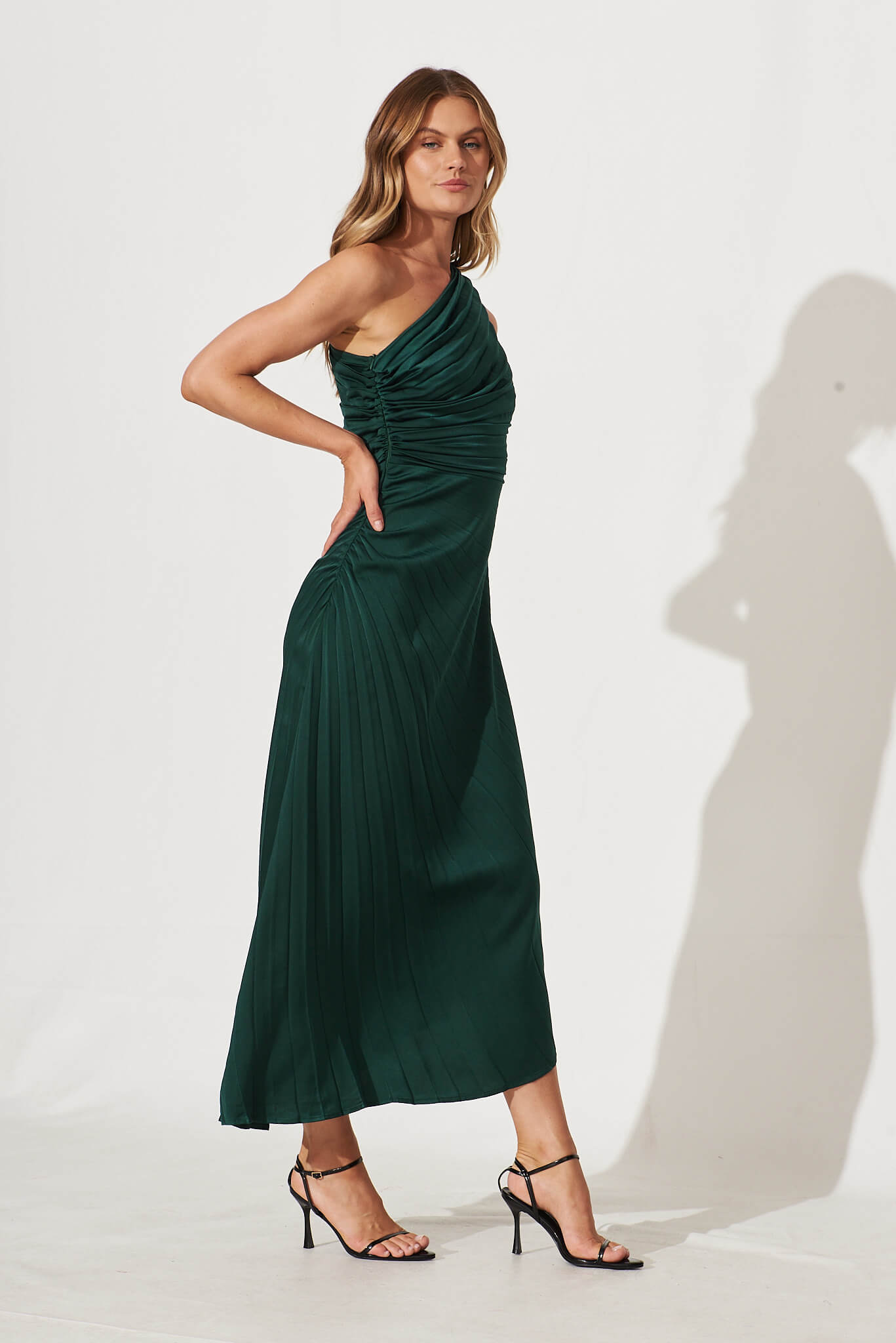 Emerald One-Shoulder Maxi Dress