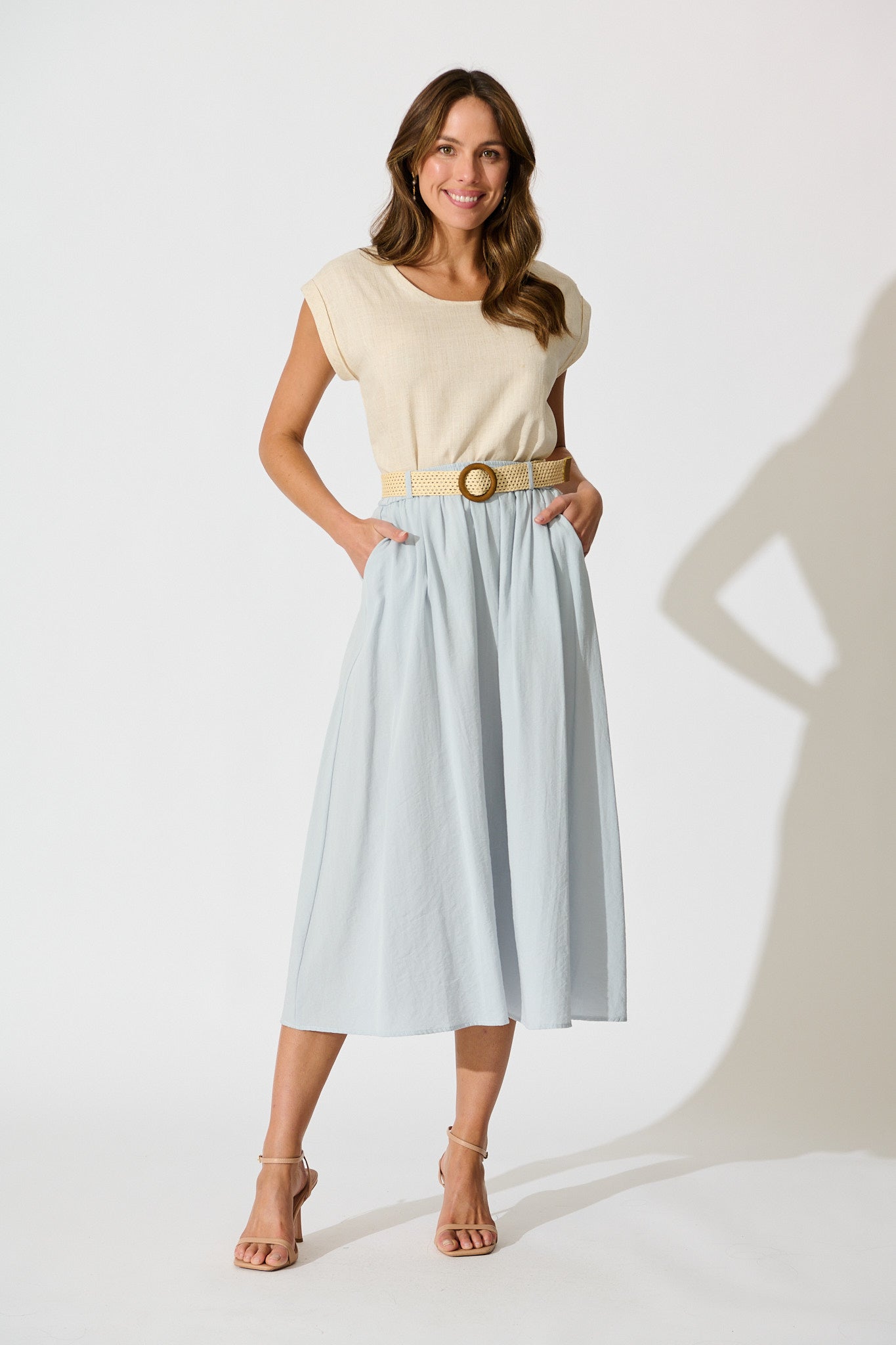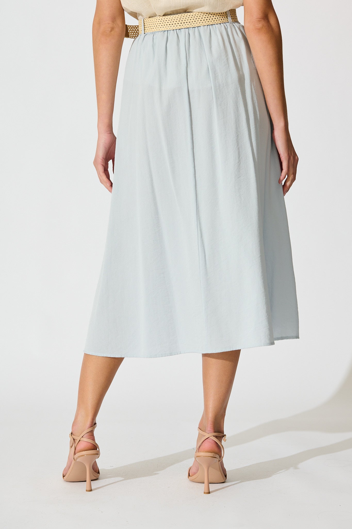 Light Blue Linen Cotton Blend Fenella Maxi Skirt