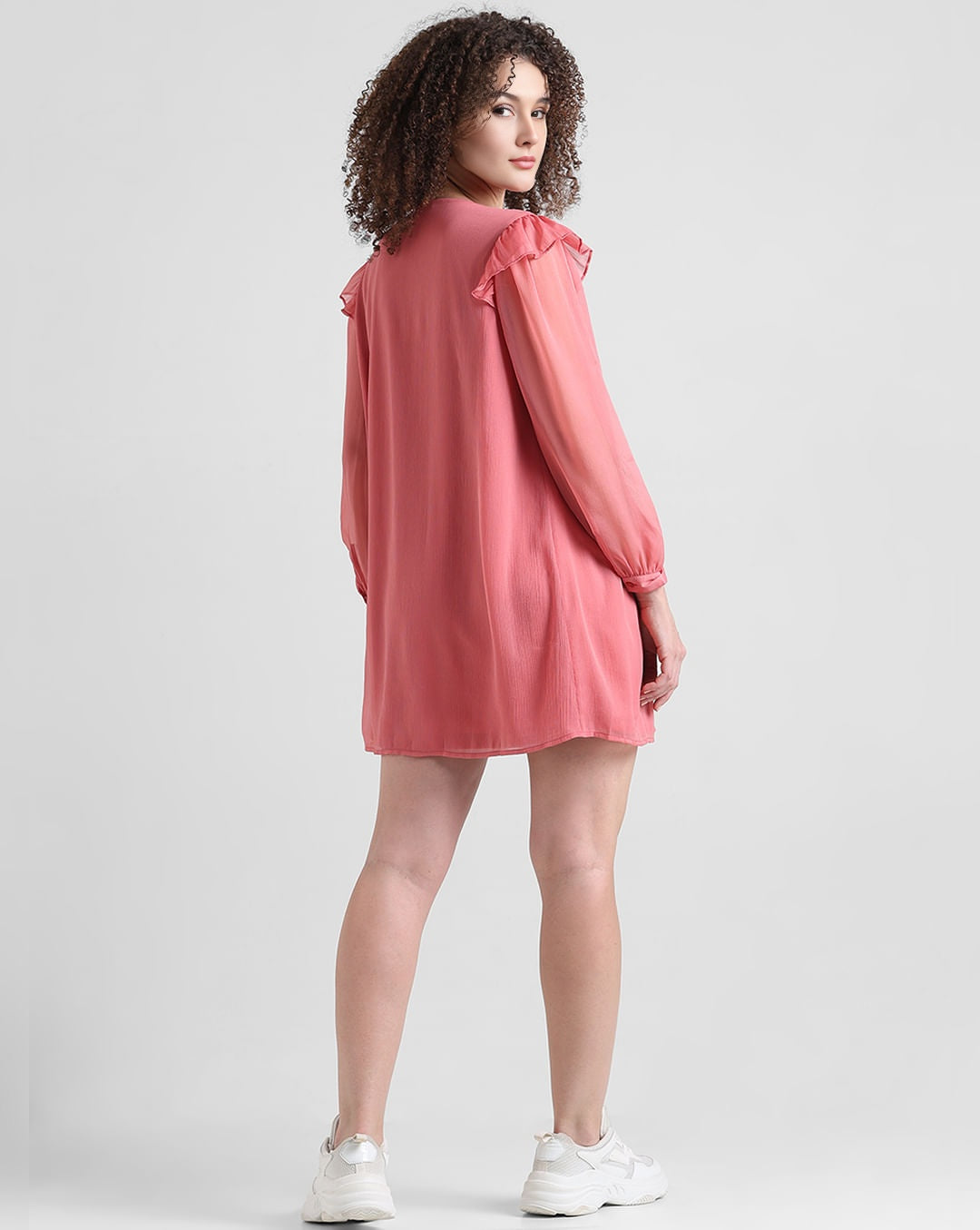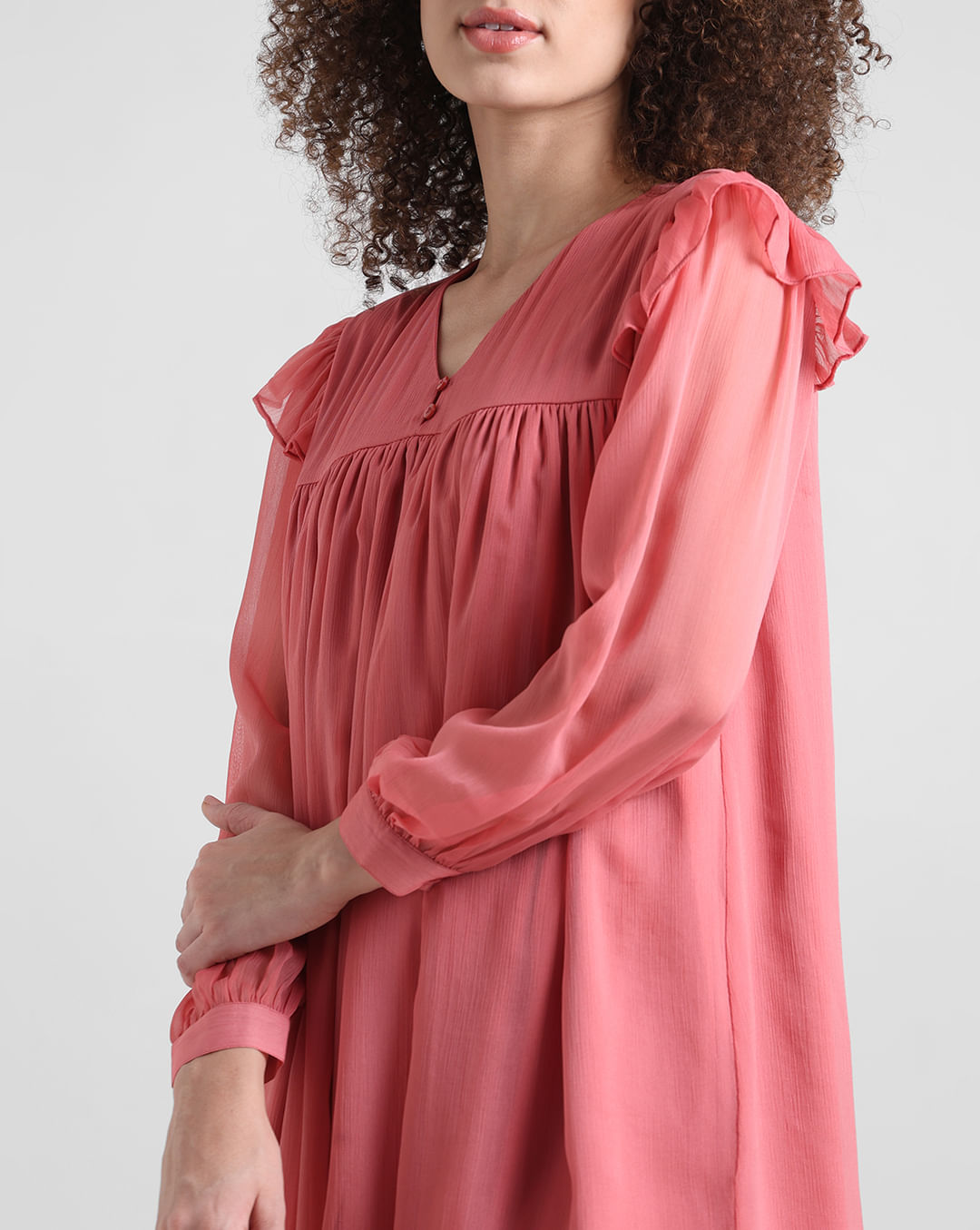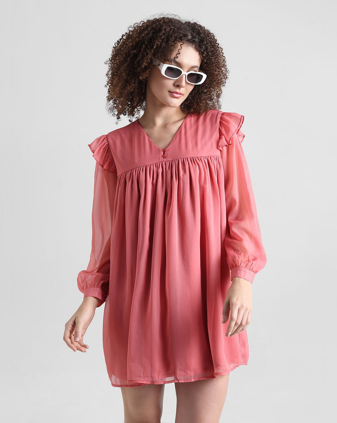 Light Red Chiffon Dress with V-Neck