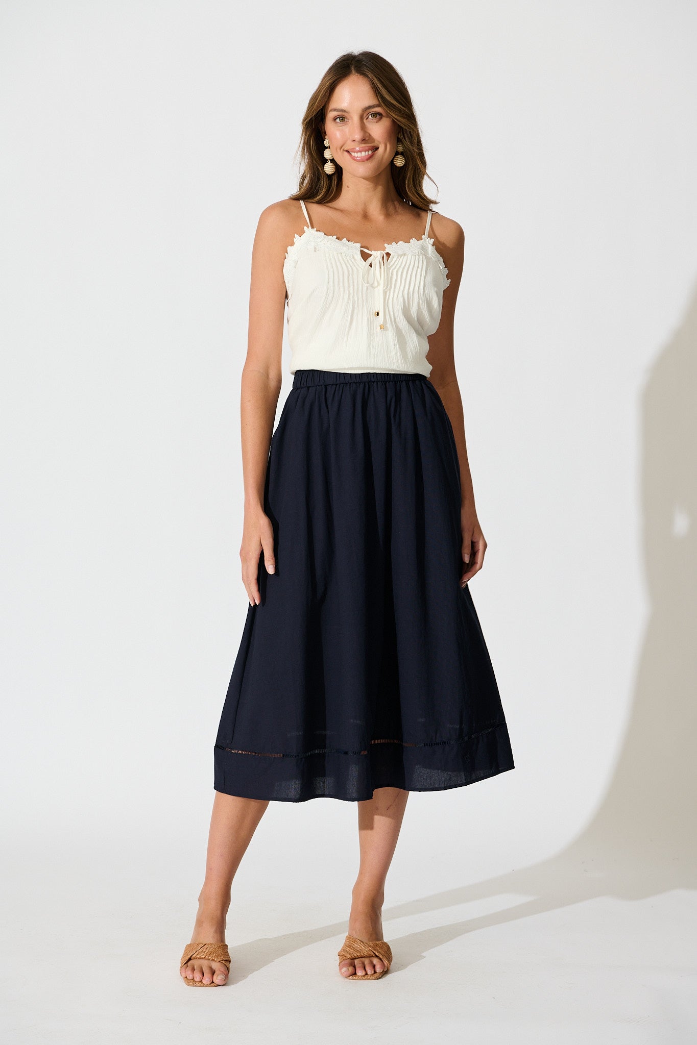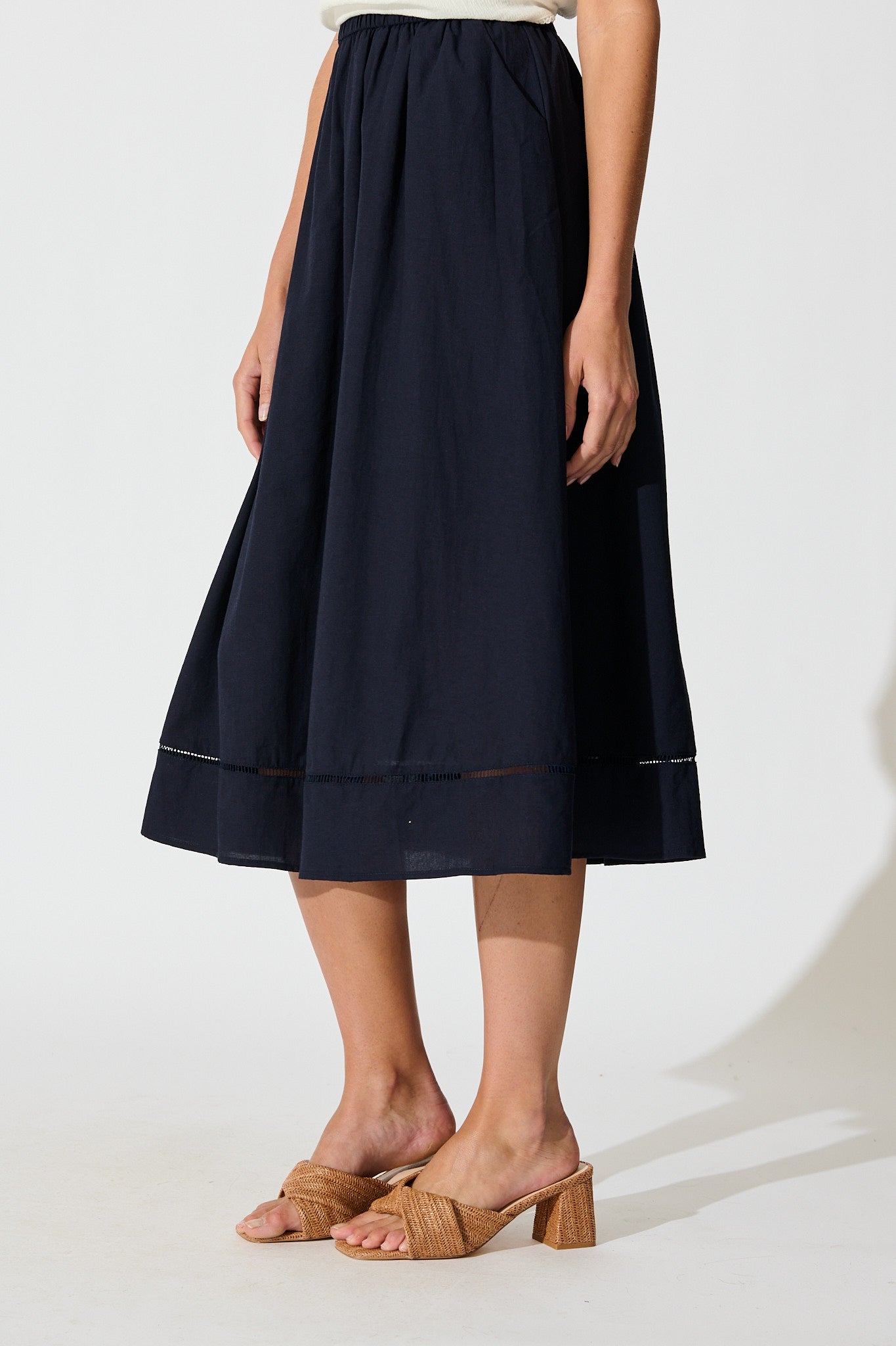 Navy Linen Blend Cylas Midi Skirt