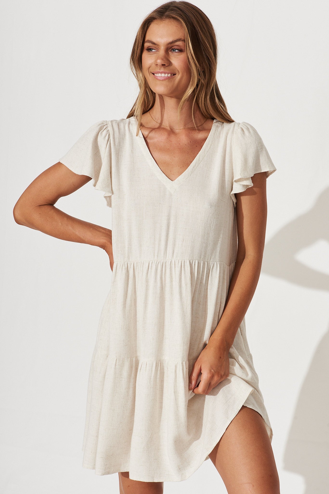 Oatmeal Linen Blend Smock Dress from Tahiti