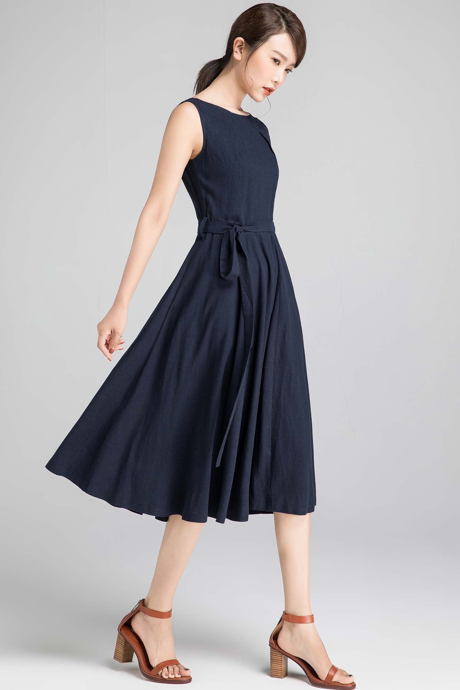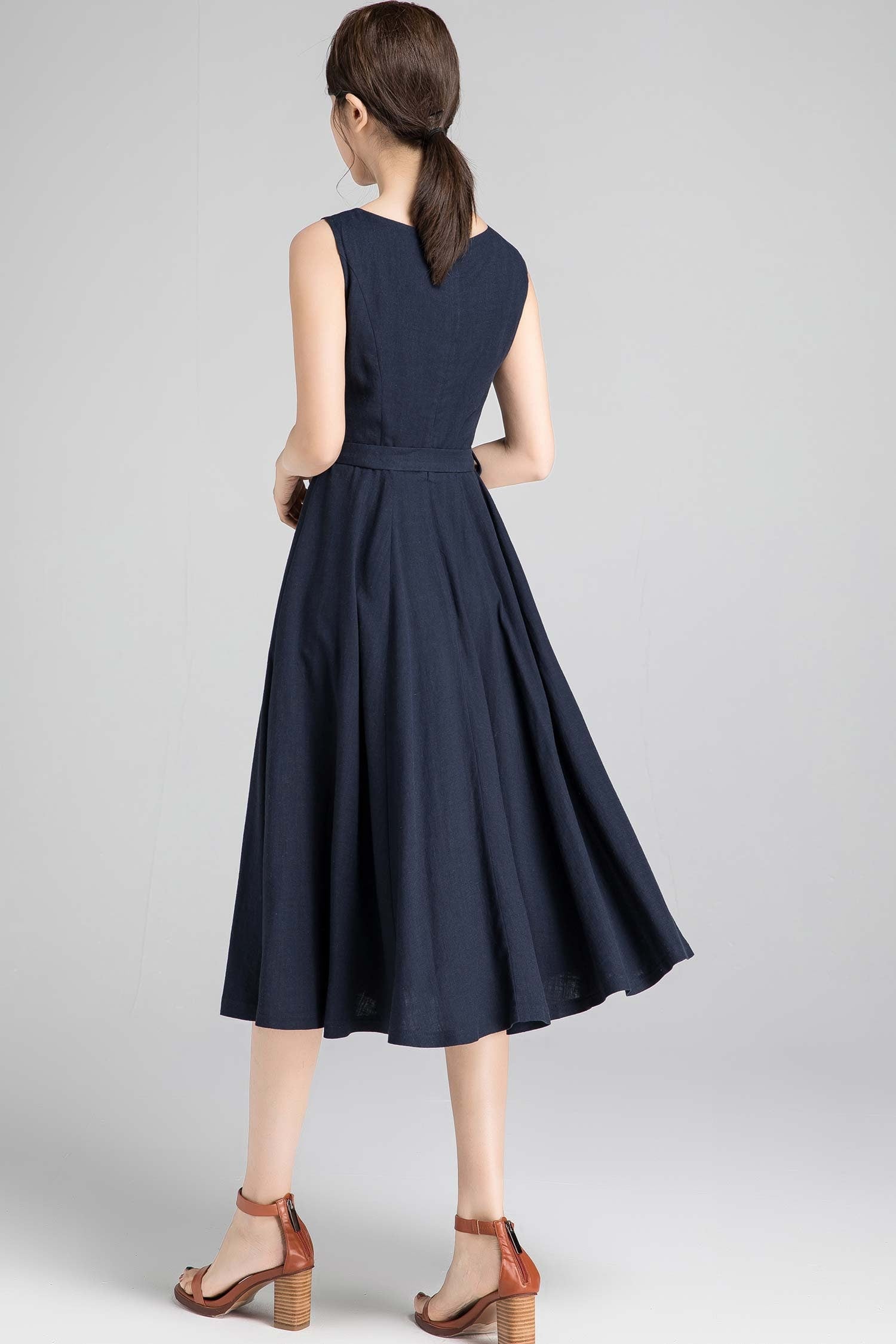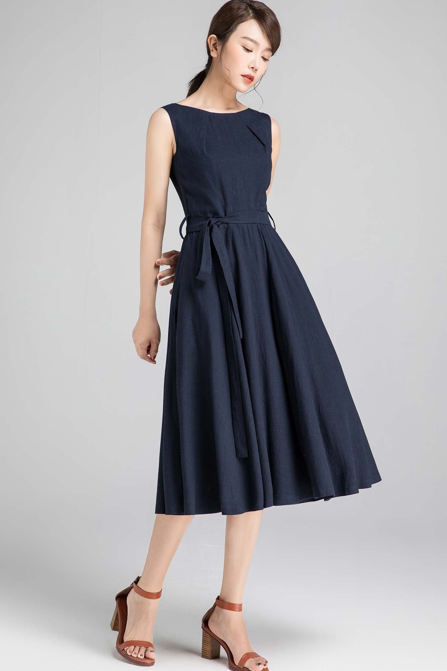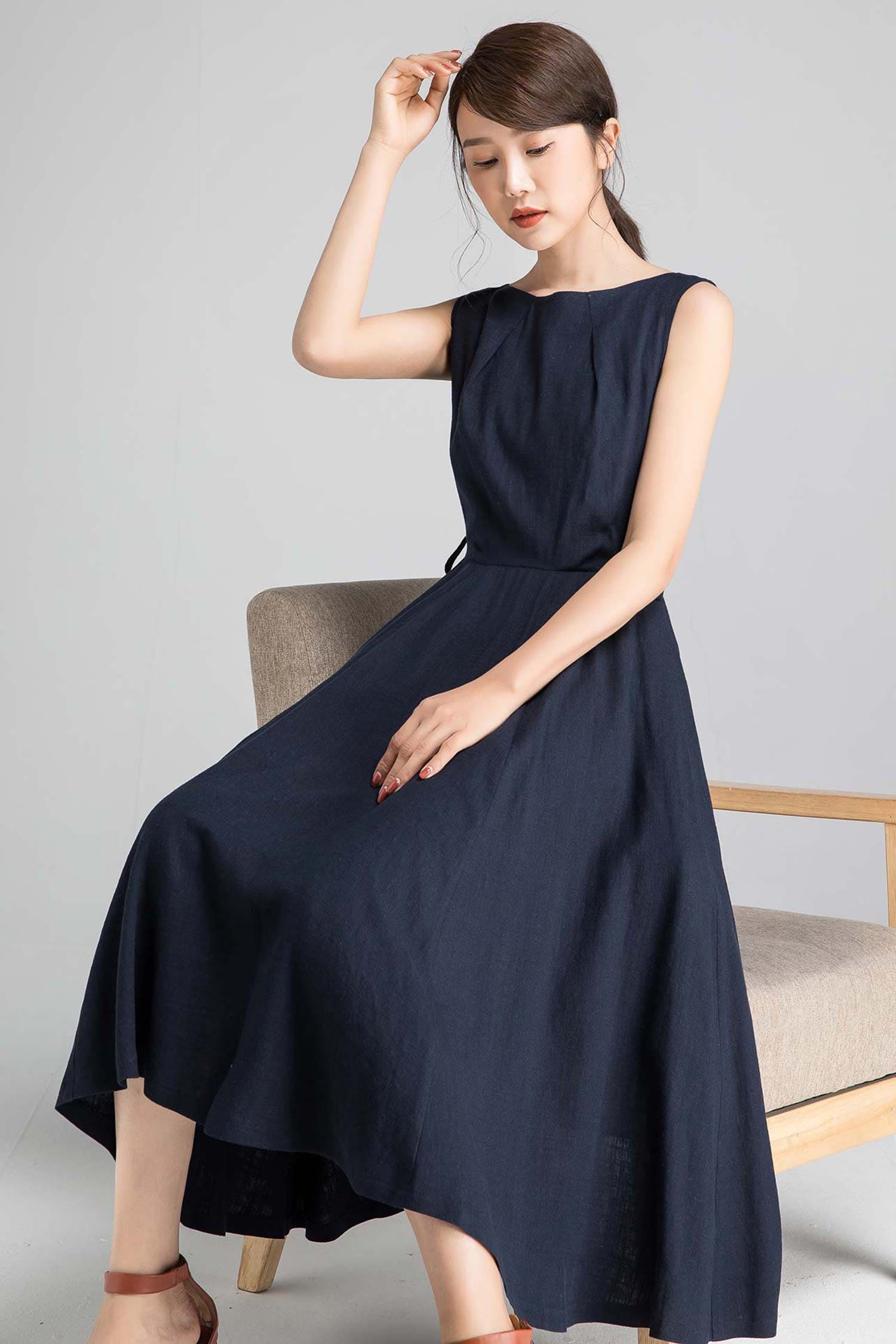 Sleeveless Linen Midi Dress